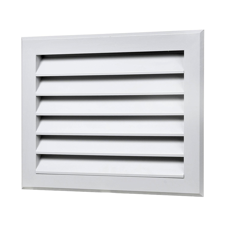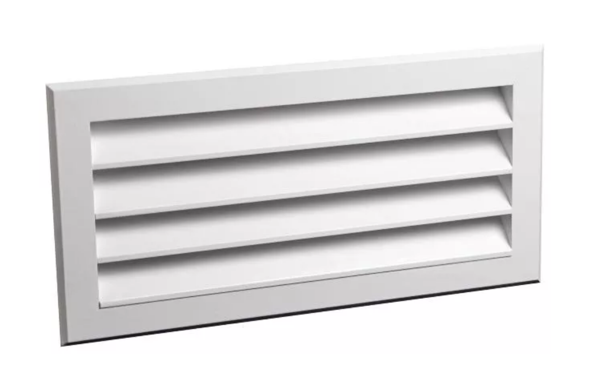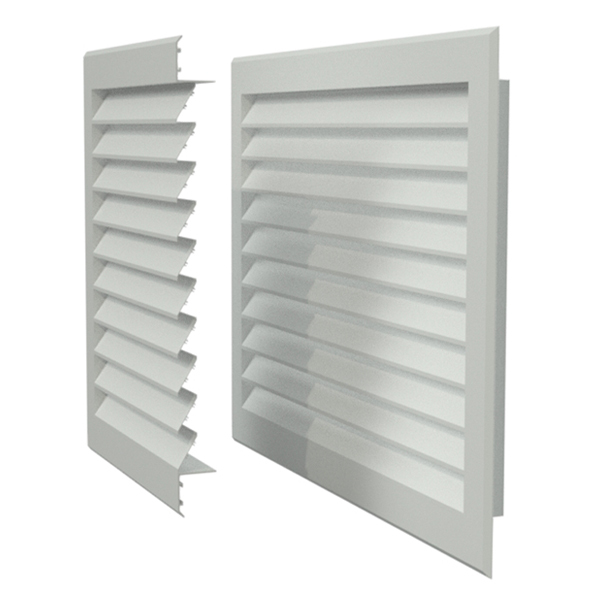 РешеткиEAL- алюминиевые решетки для наружной установки, покрашены методом порошкового напыления в белый цвет (RAL 9016). Живое сечение составляет 41% от площади решетки. Жалюзи расположены под углом 45 градусов, что исключает попадание воды или снега через решетку.